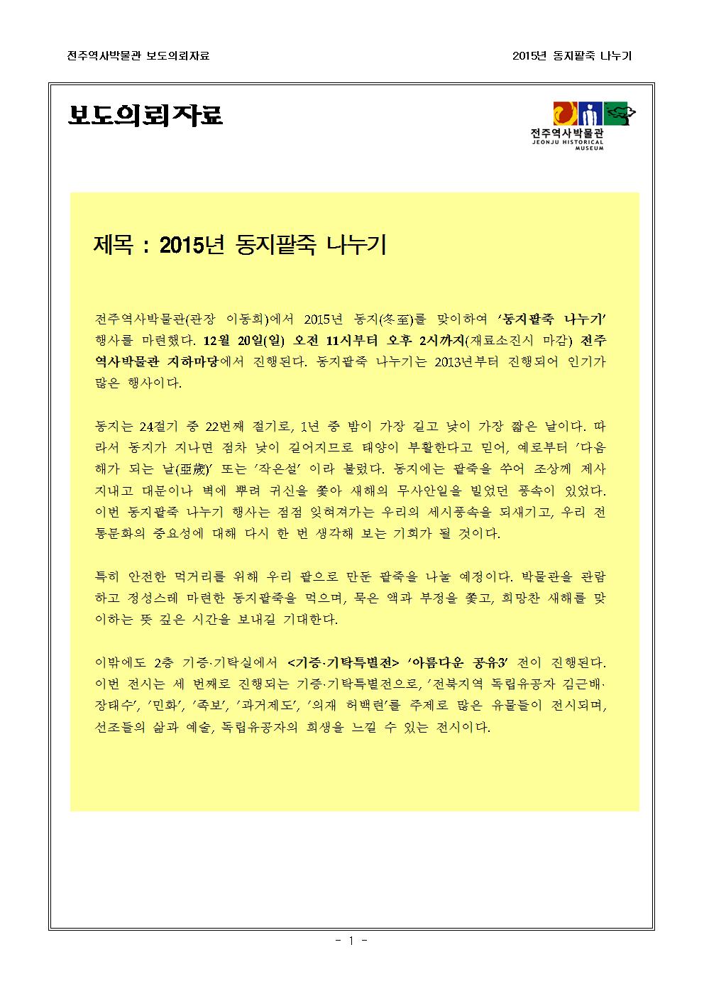 2015 동지팥죽나누기 보도의뢰자료